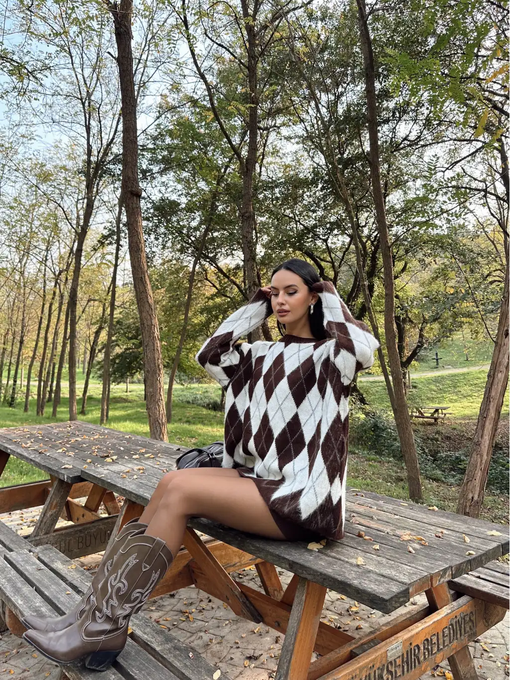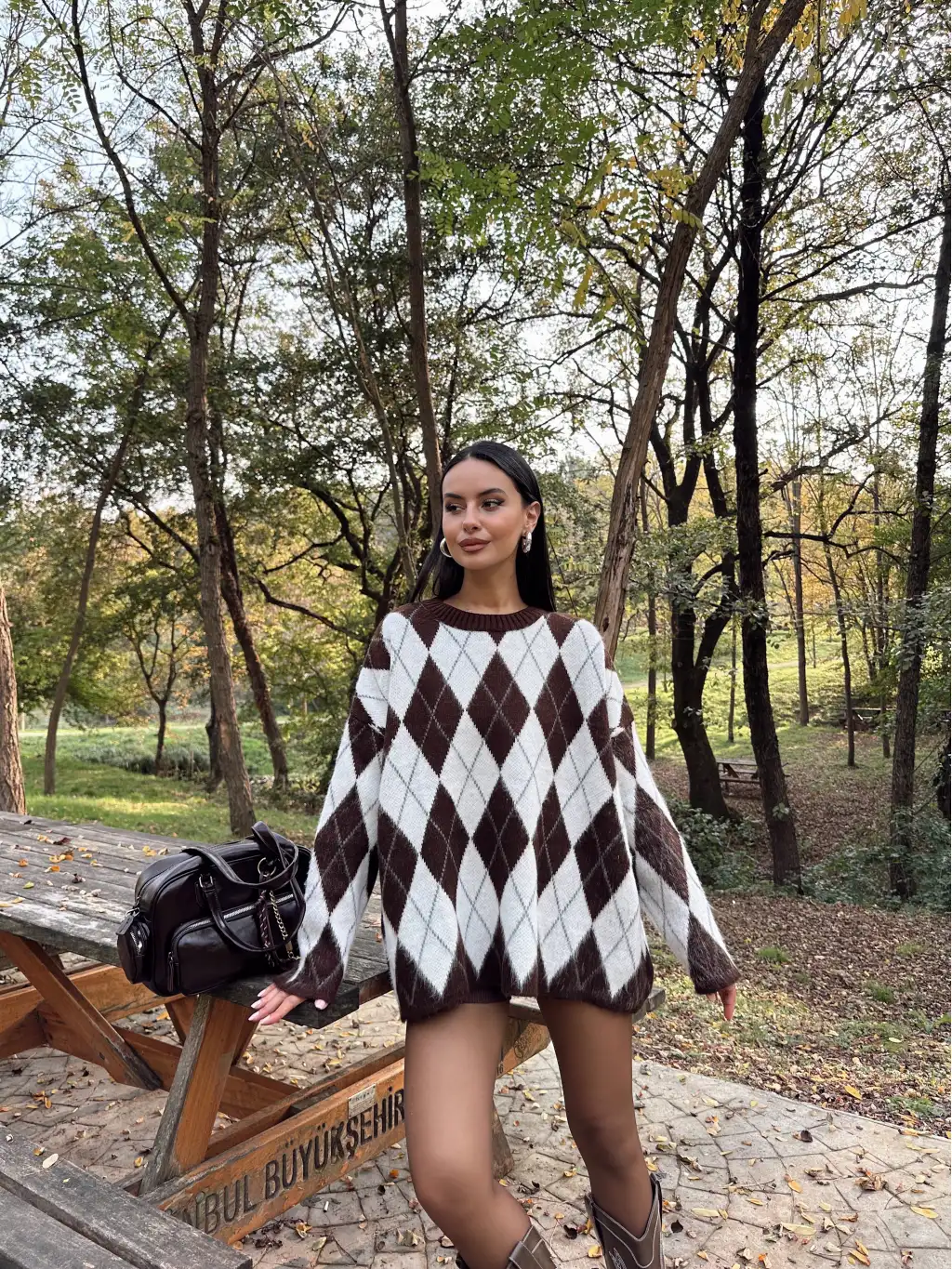 Baklava Desen Oversize Kazak -Kahverengi