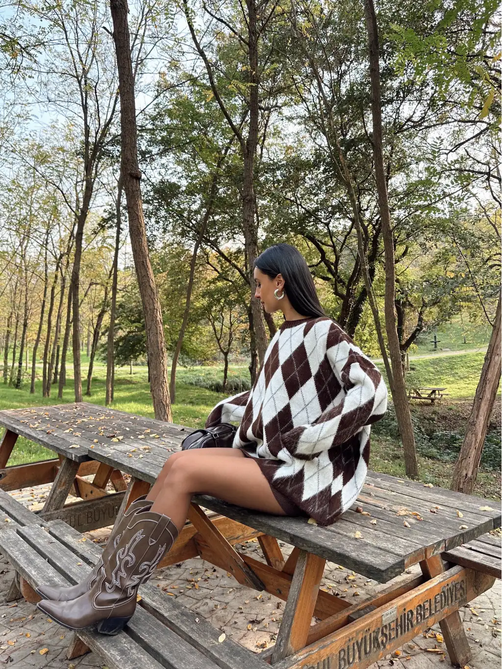Baklava Desenli Oversize Kazak Etek Takım