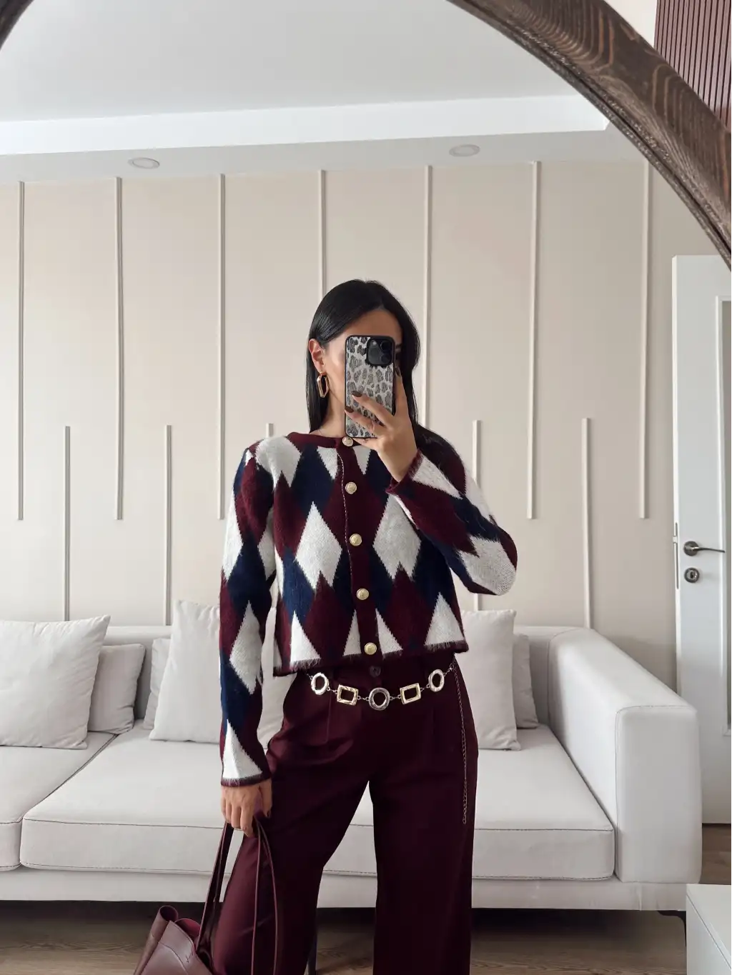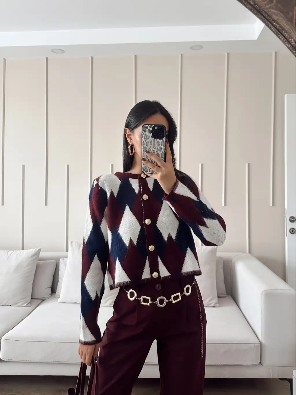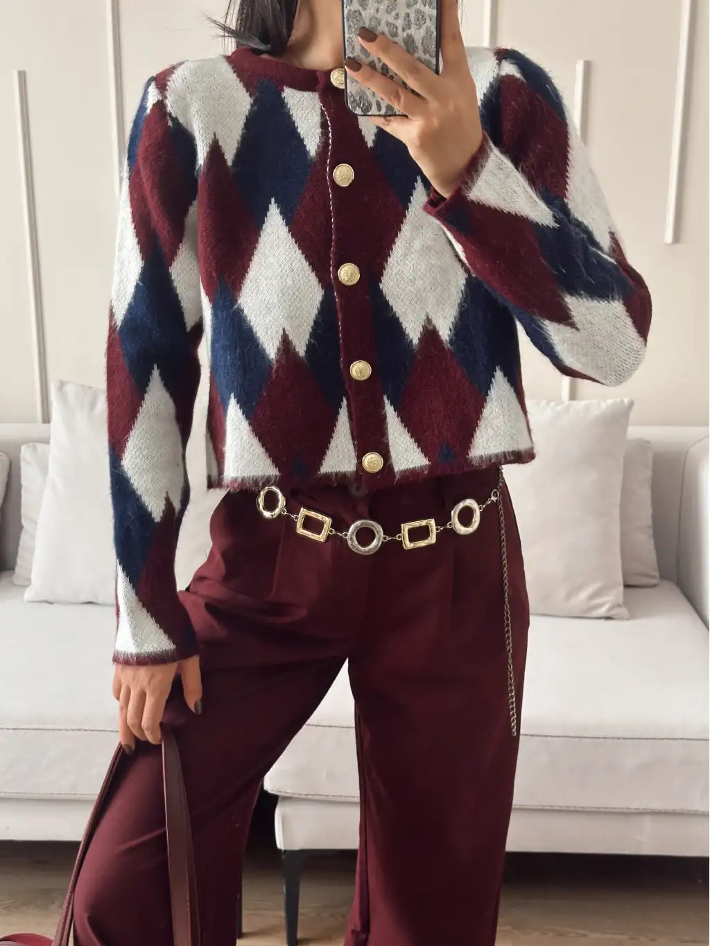 Gold düğmeli triko kazak