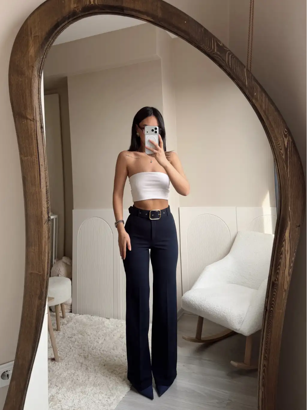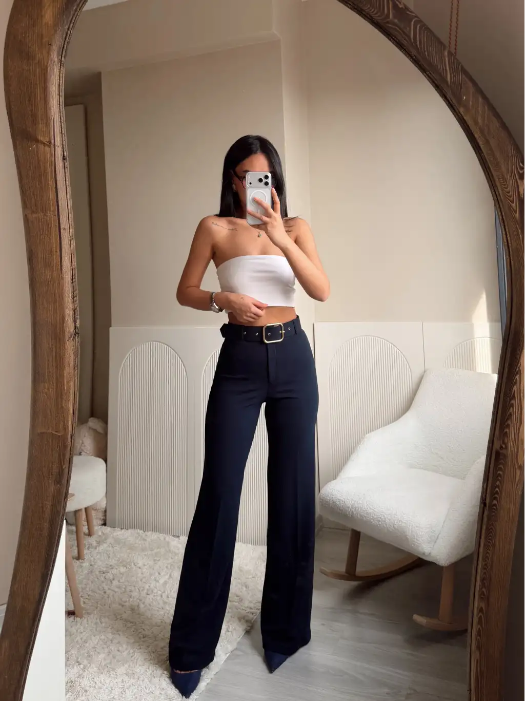 İspanyol paça düğme ve fermuar detay tayt pantolon- Siyah
