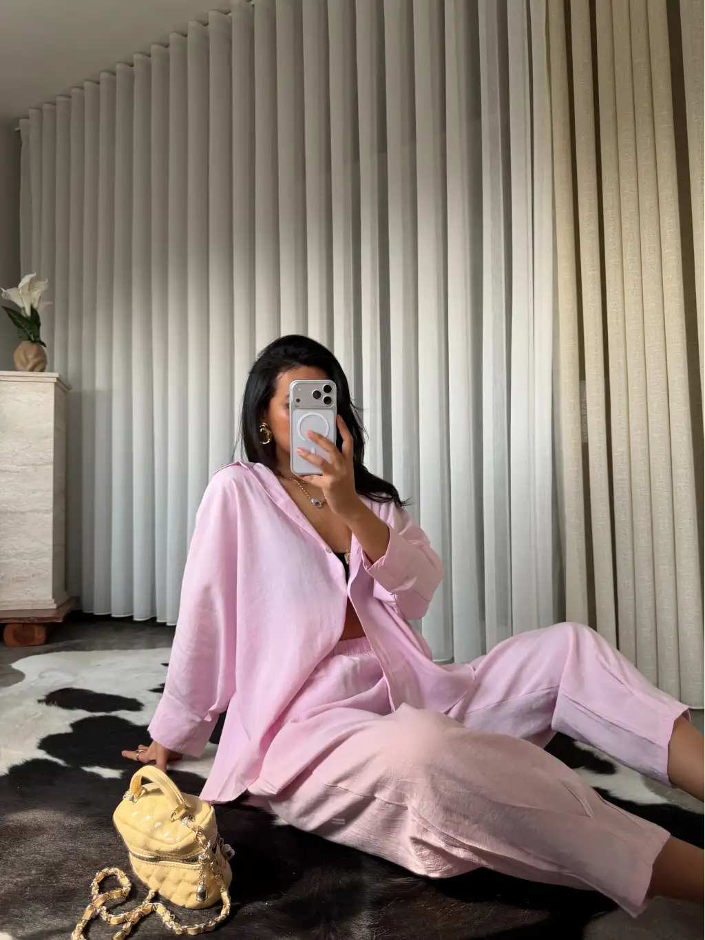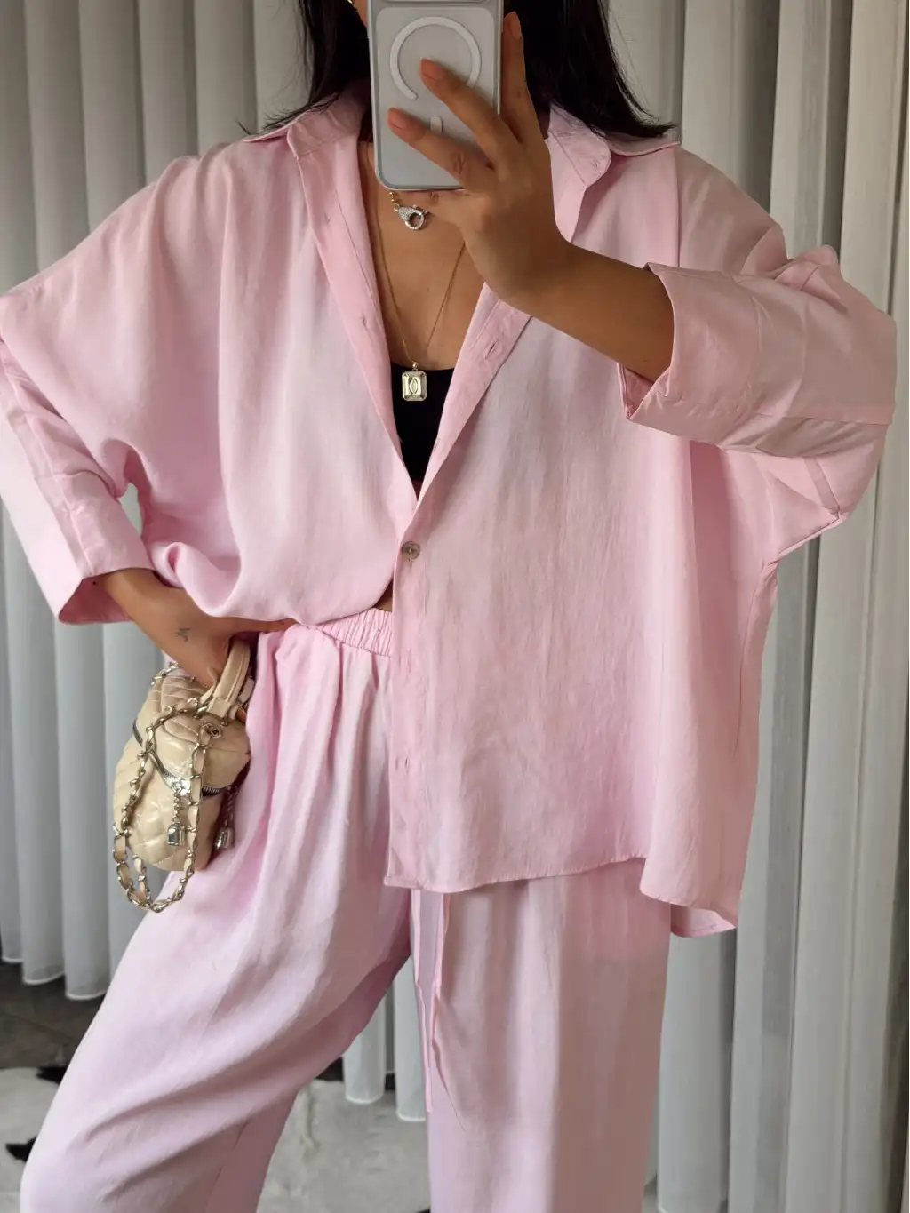 Belden oturan geniş kol bluz - Pembe