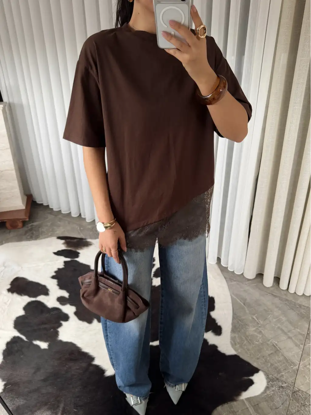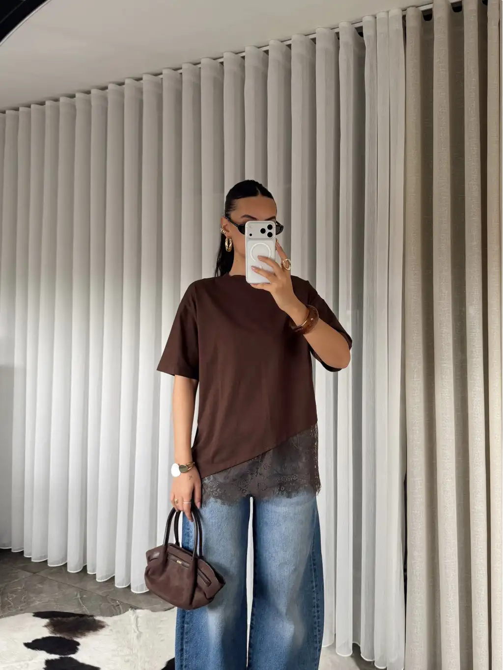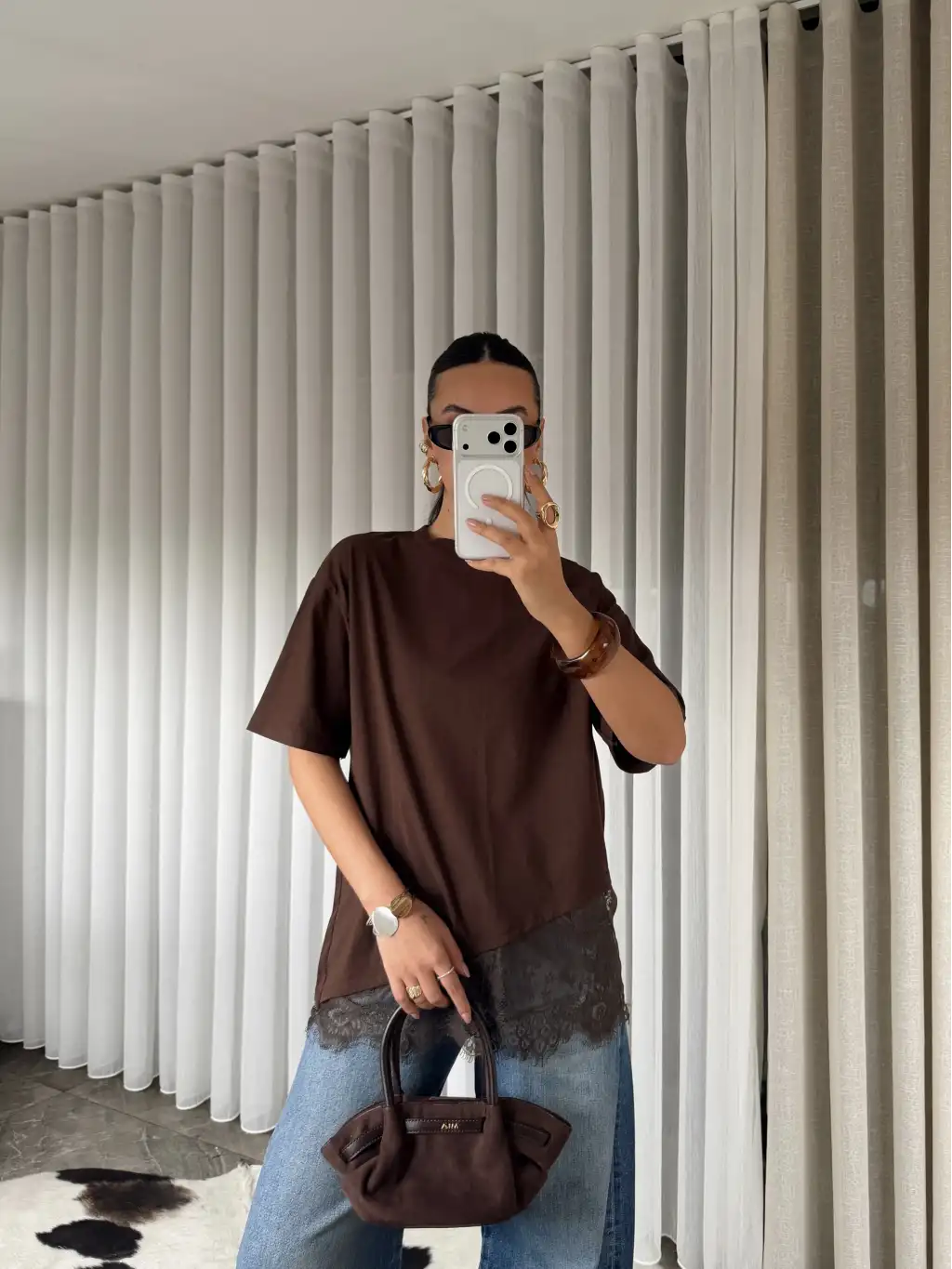 Gold tokalı modal kumaş mini elbise - Kahverengi