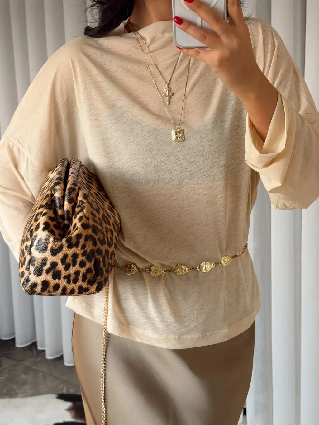 Gold tokalı modal kumaş mini elbise - Kahverengi