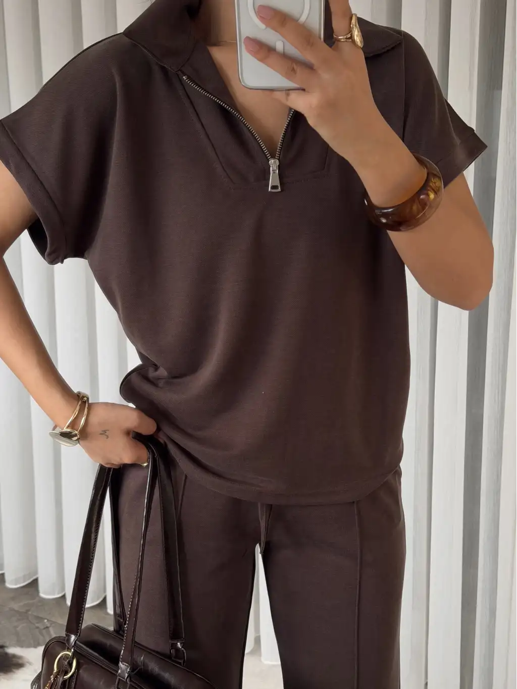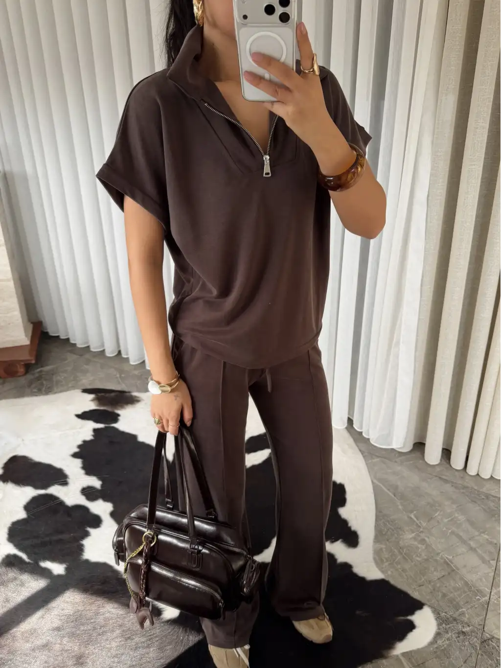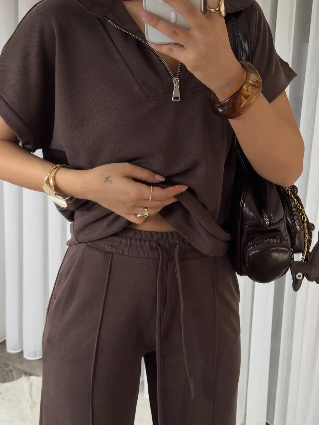 Oys modal kumaş eşofman takımı - Kahverengi