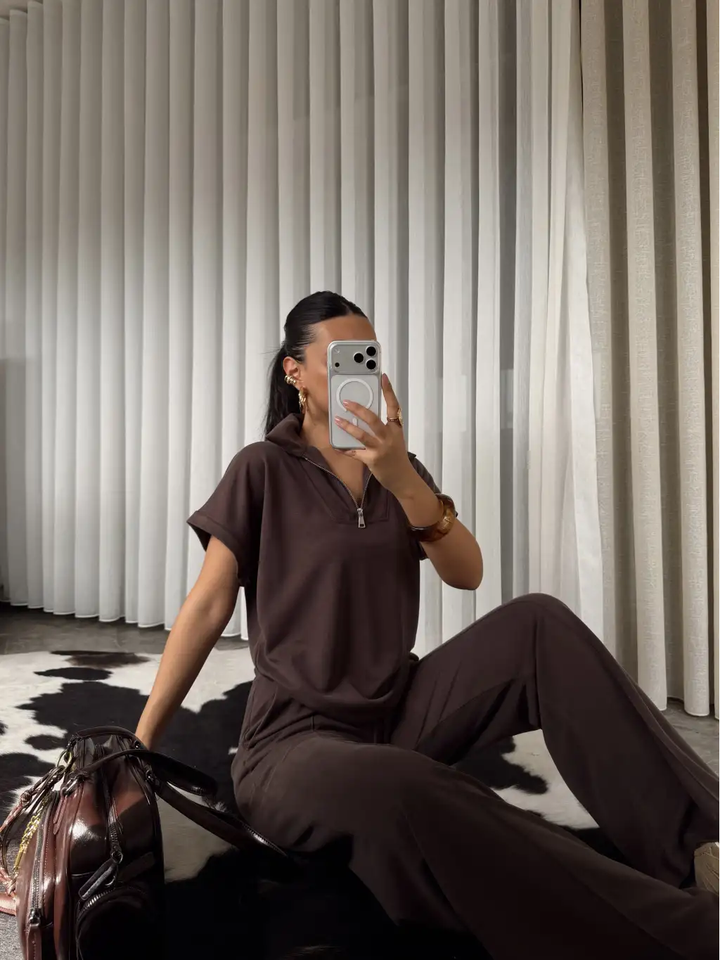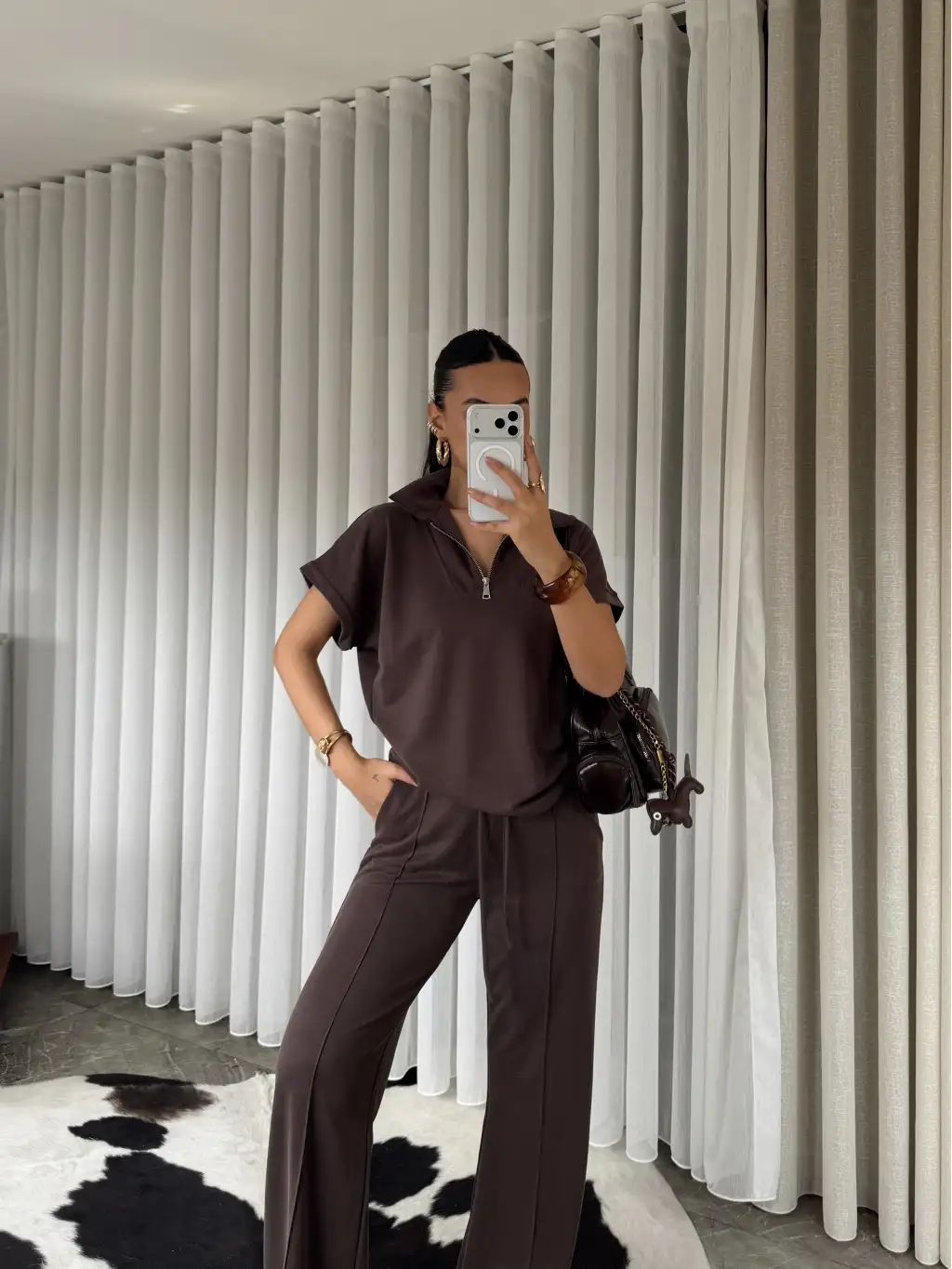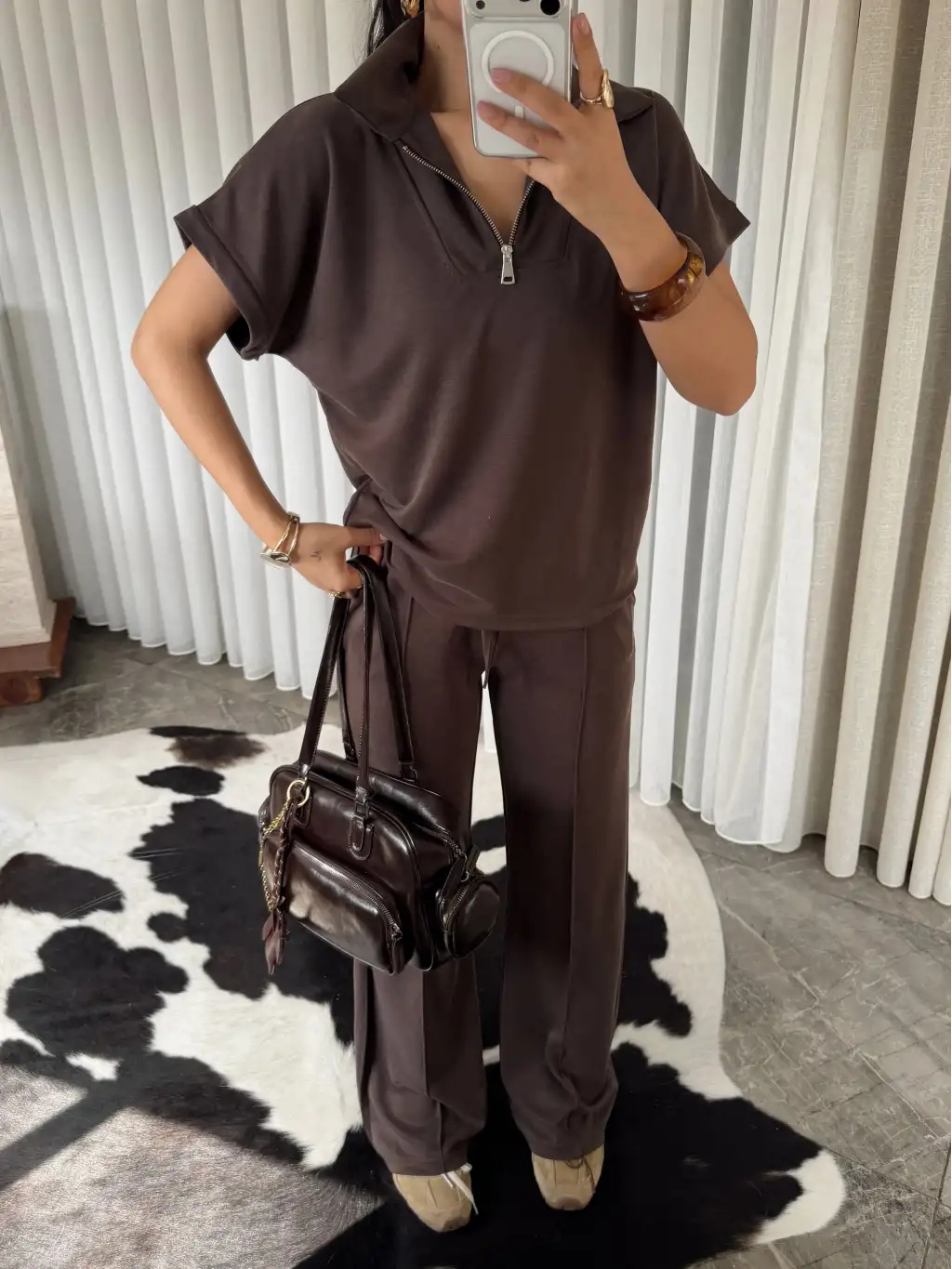 Oys modal kumaş eşofman takımı - Kahverengi