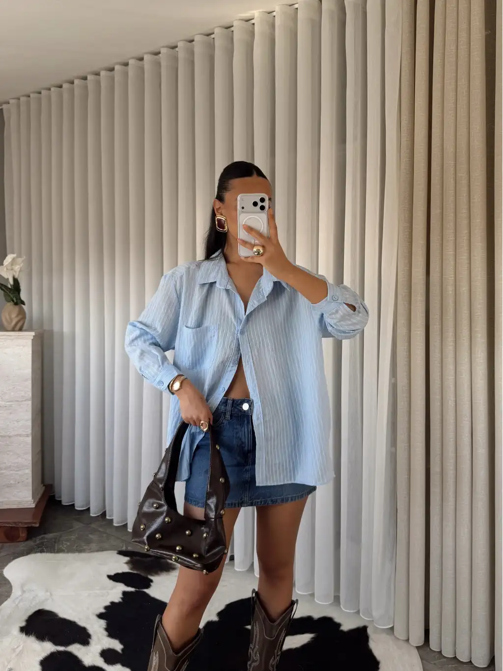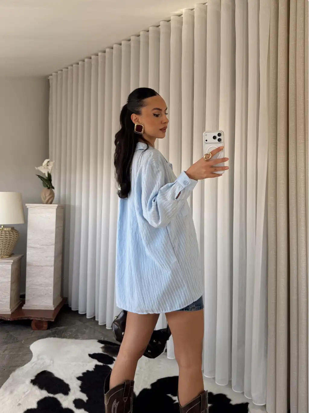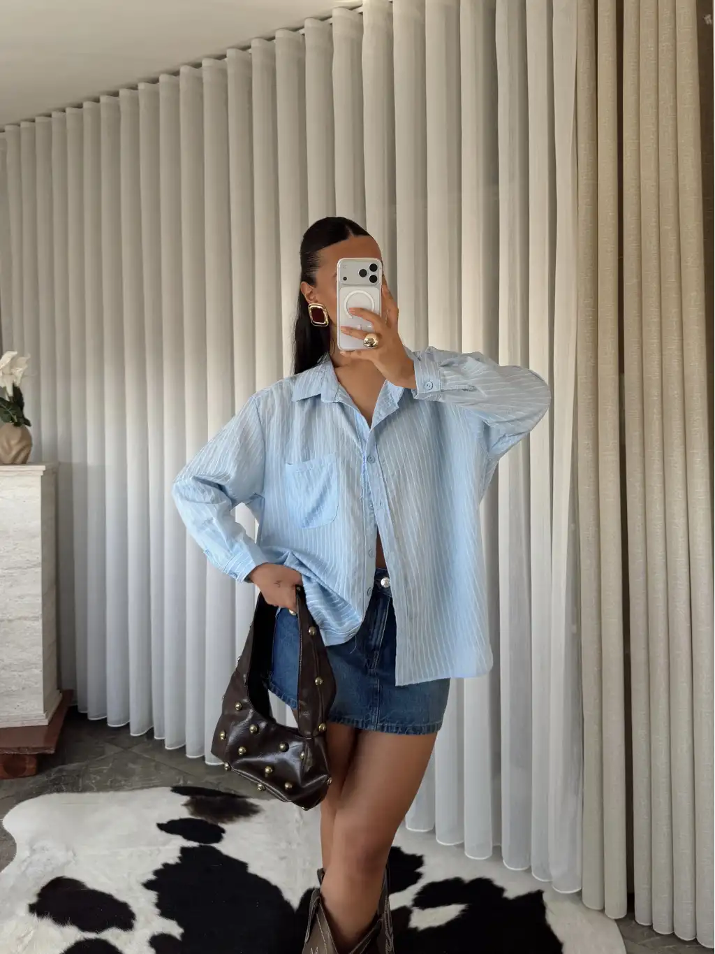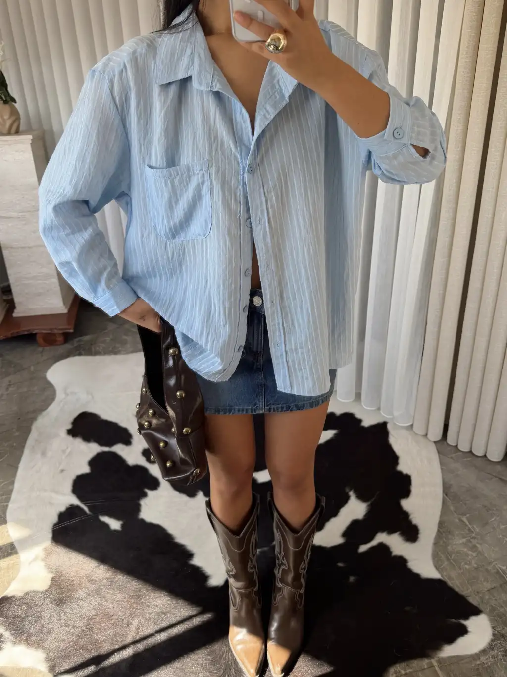Çizgili oversize gömlek -Kahverengi