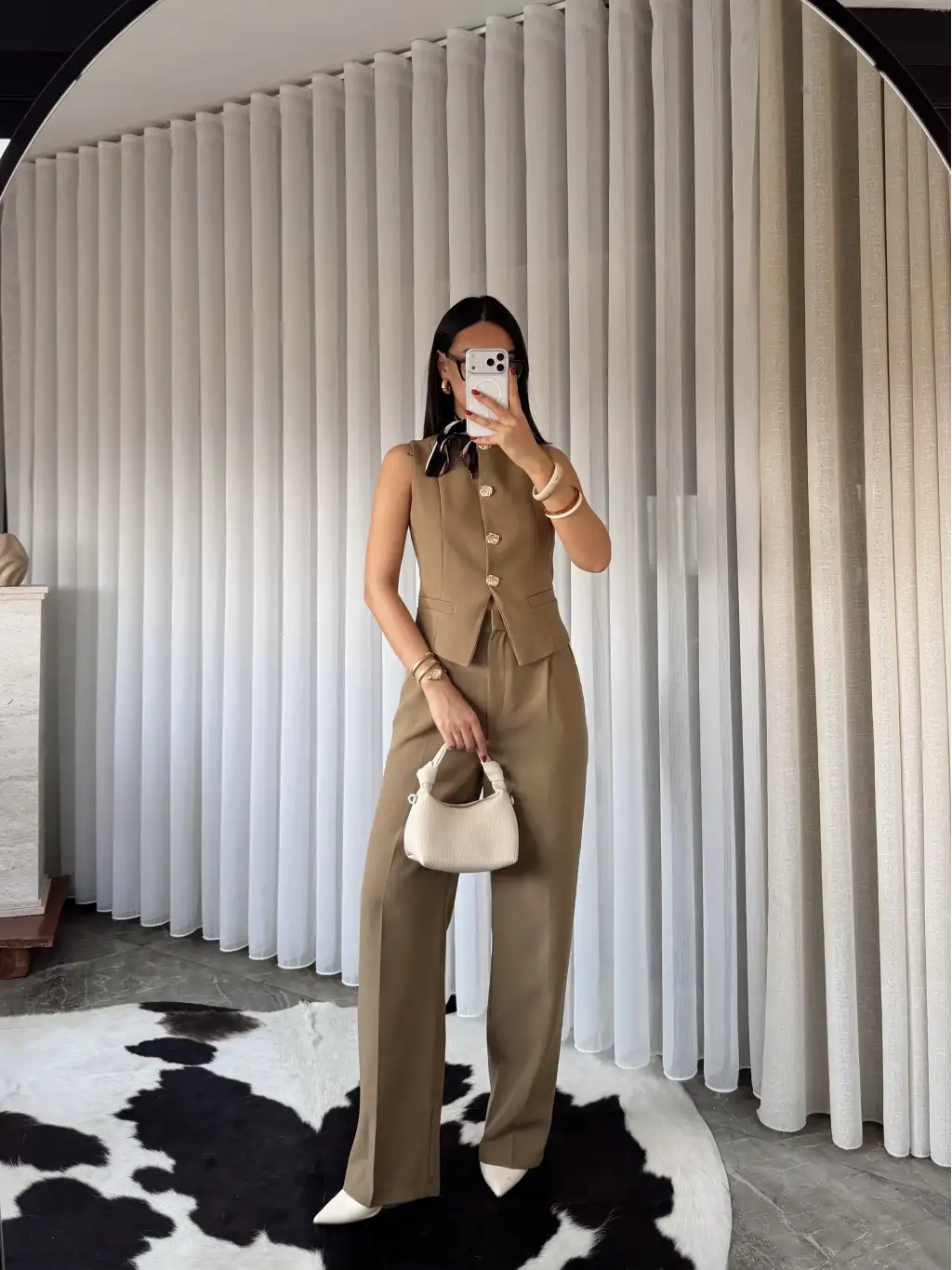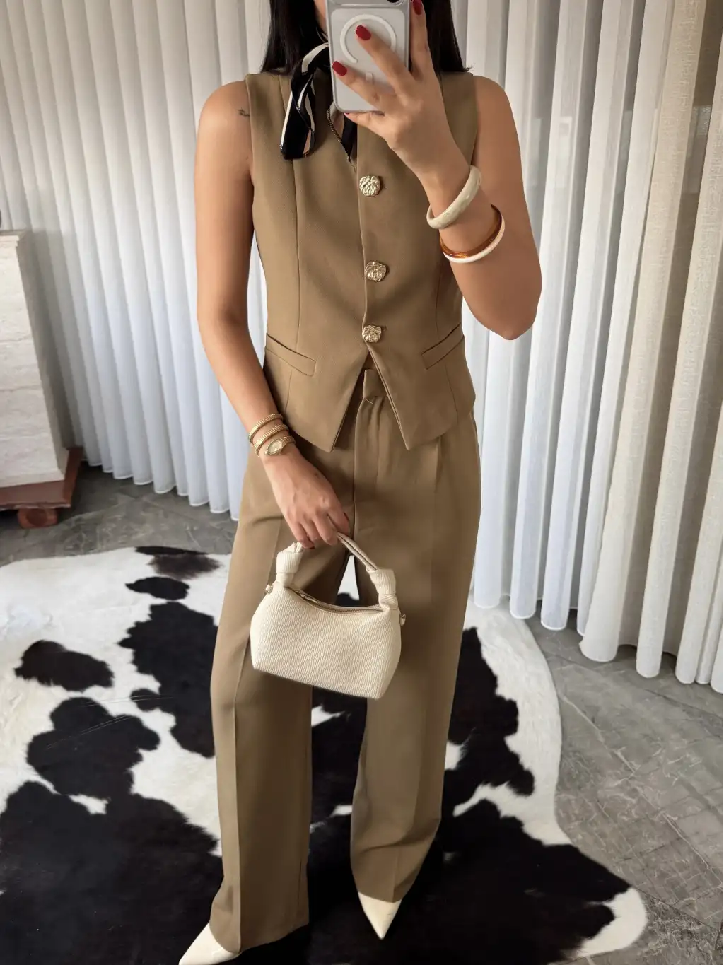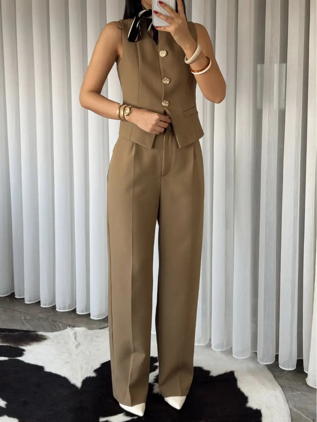 Gold düğme detay yelekli takım