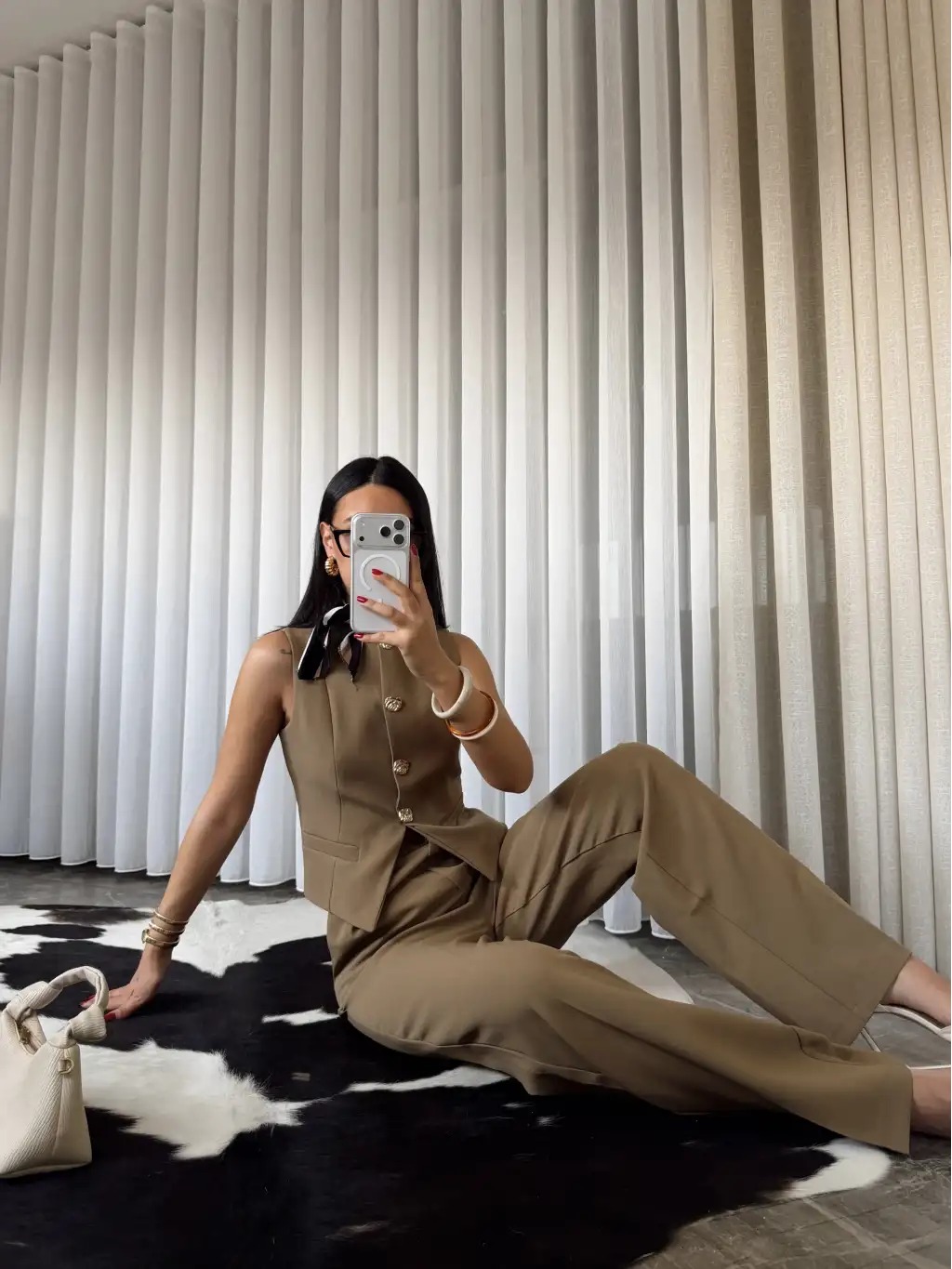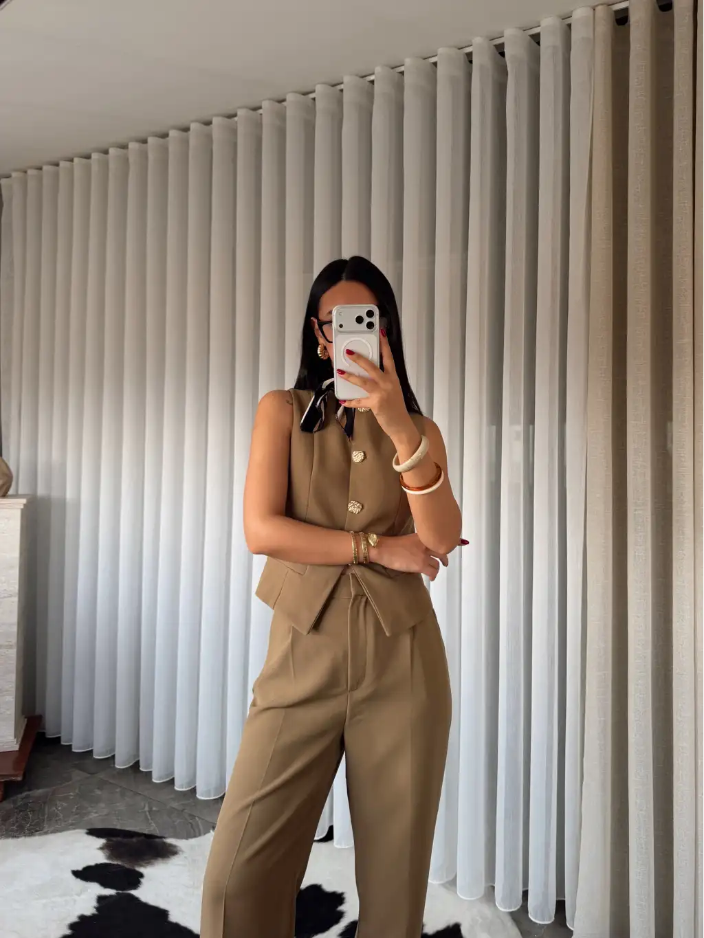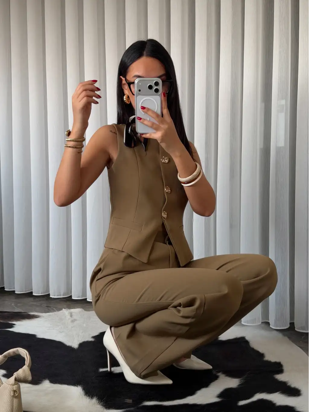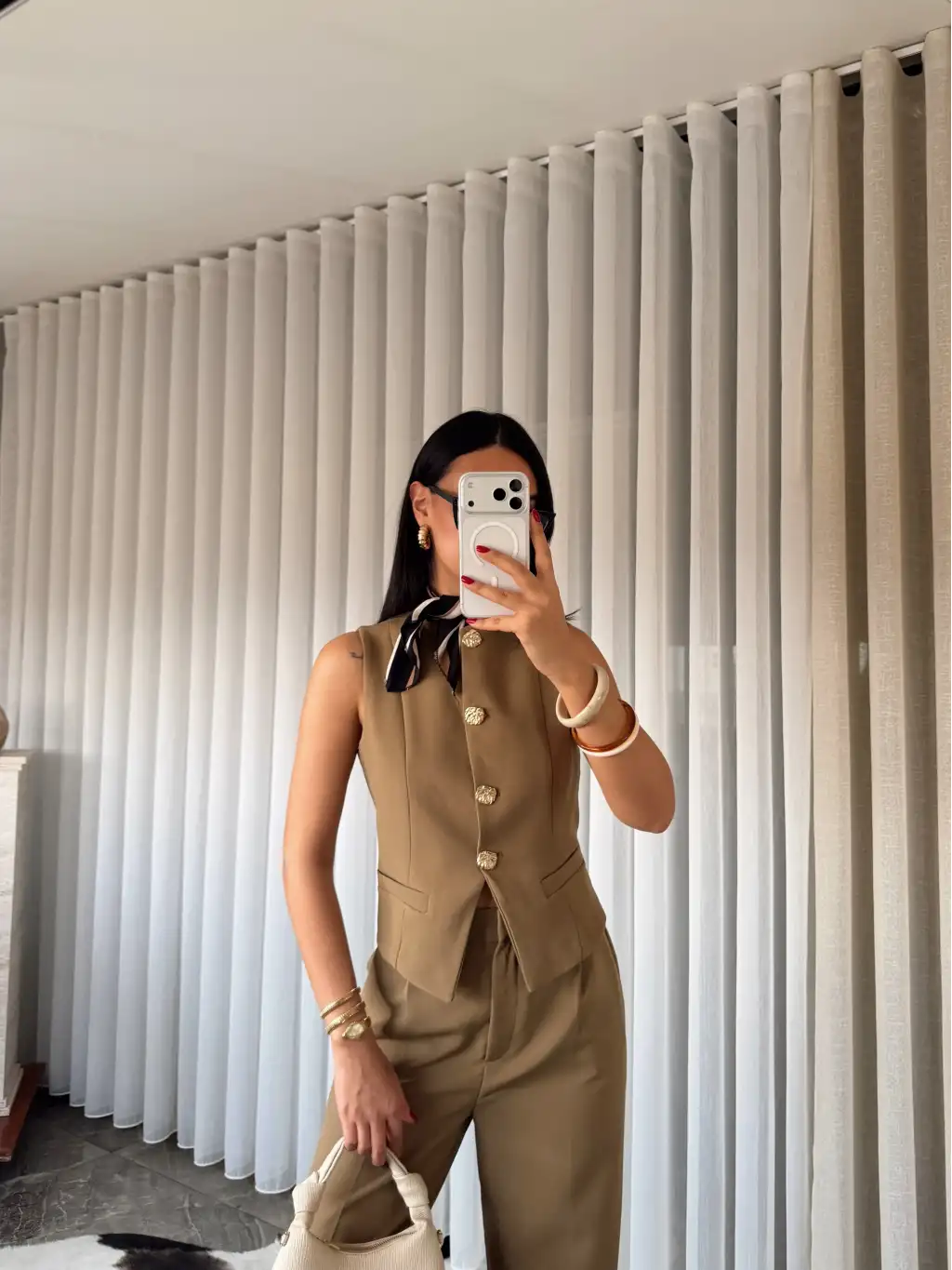 Gold düğme detay yelekli takım