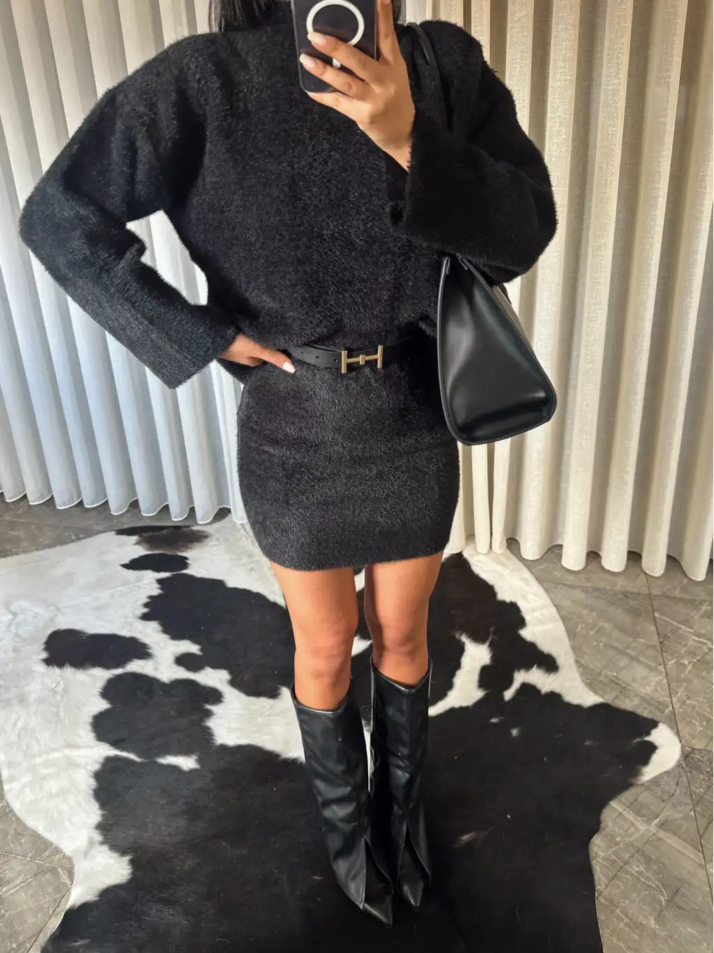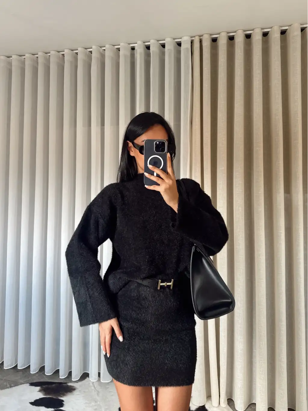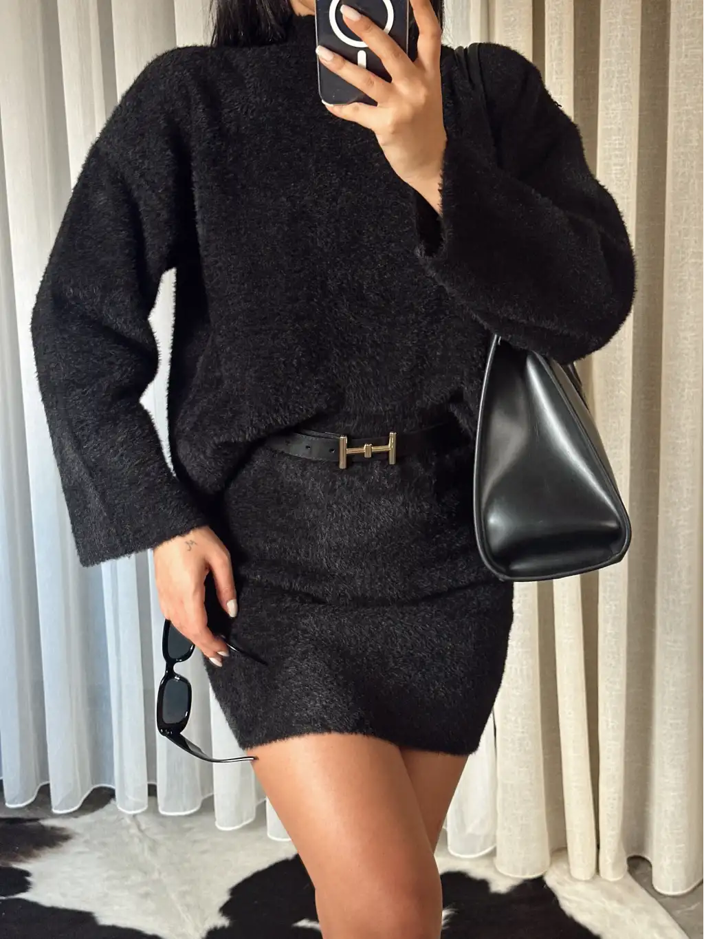 Kot detay oversize eşofman takımı -Siyah